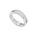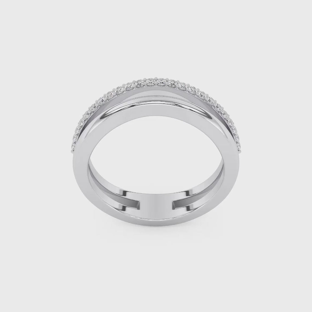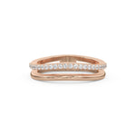 Cette composition raffinée crée une sensation de légèreté et de mouvement, où les deux anneaux semblent flotter en parfaite symétrie tout en assurant confort et stabilité. Réalisée en Or 18K (750/1000) et sublimée par 0,12 carat de diamants, cette alliance de 5,5 g conjugue finesse, modernité et brillance subtile.