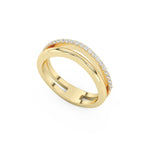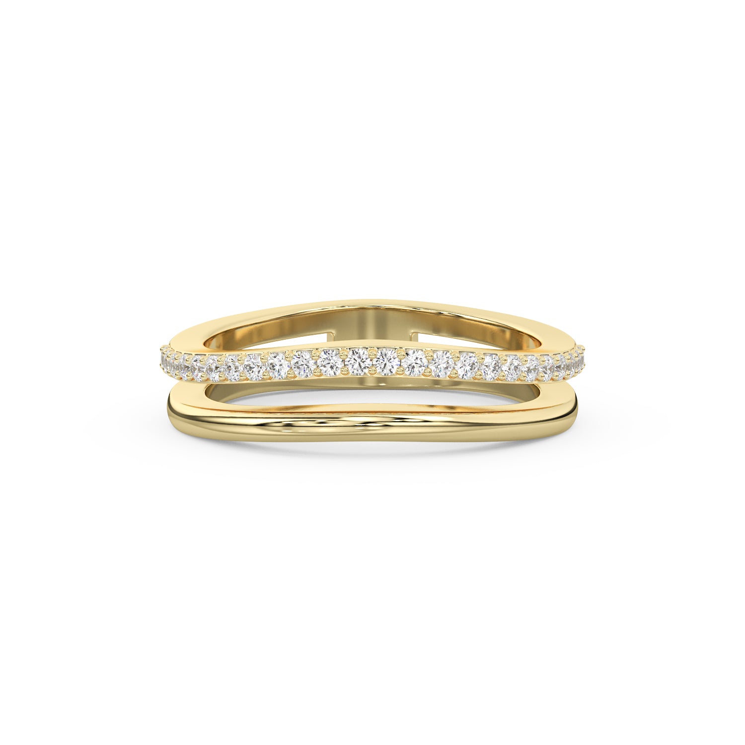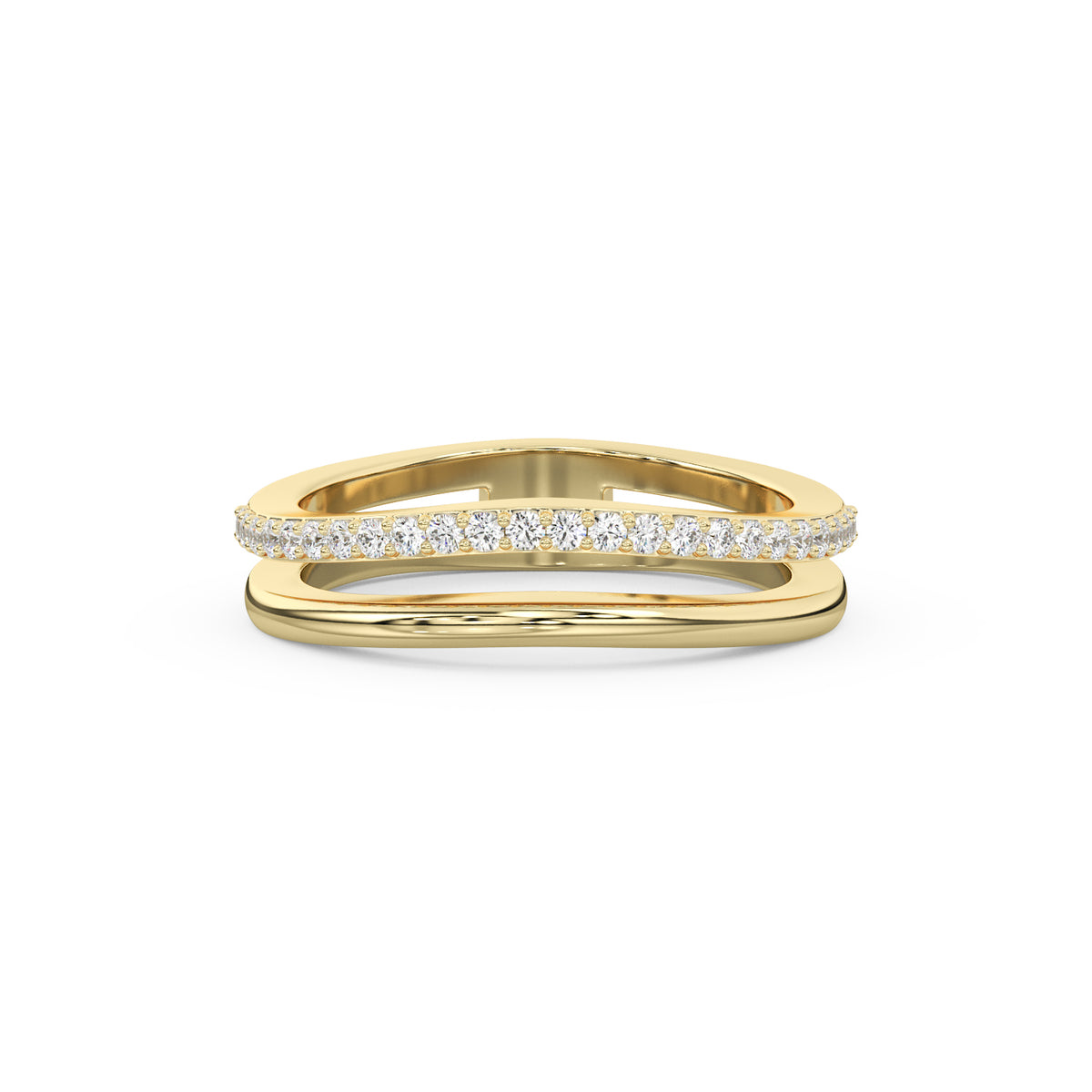 Prix unitaire / parLa Bague ONDINE propose une interprétation contemporaine de l’alliance classique. Composée de deux anneaux distincts reliés à l’arrière du doigt, elle se distingue par un jeu de contrastes harmonieux : l’un des anneaux, lisse et poli, met en valeur la pureté de l’Or, tandis que l’autre, pavé de diamants ronds sur un demi-tour, illumine la main d’un éclat délicat.