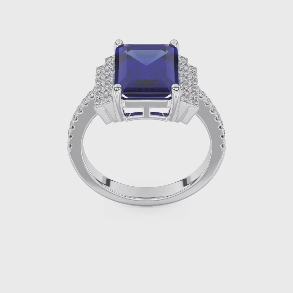 Prix unitaire / parLa bague ICÔNE AZUR se distingue par l’élégance graphique de son saphir taille émeraude de 3,70 carats, dont les lignes nettes et la profondeur de la pierre captent la lumière avec intensité.