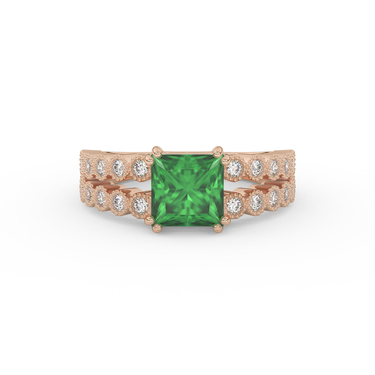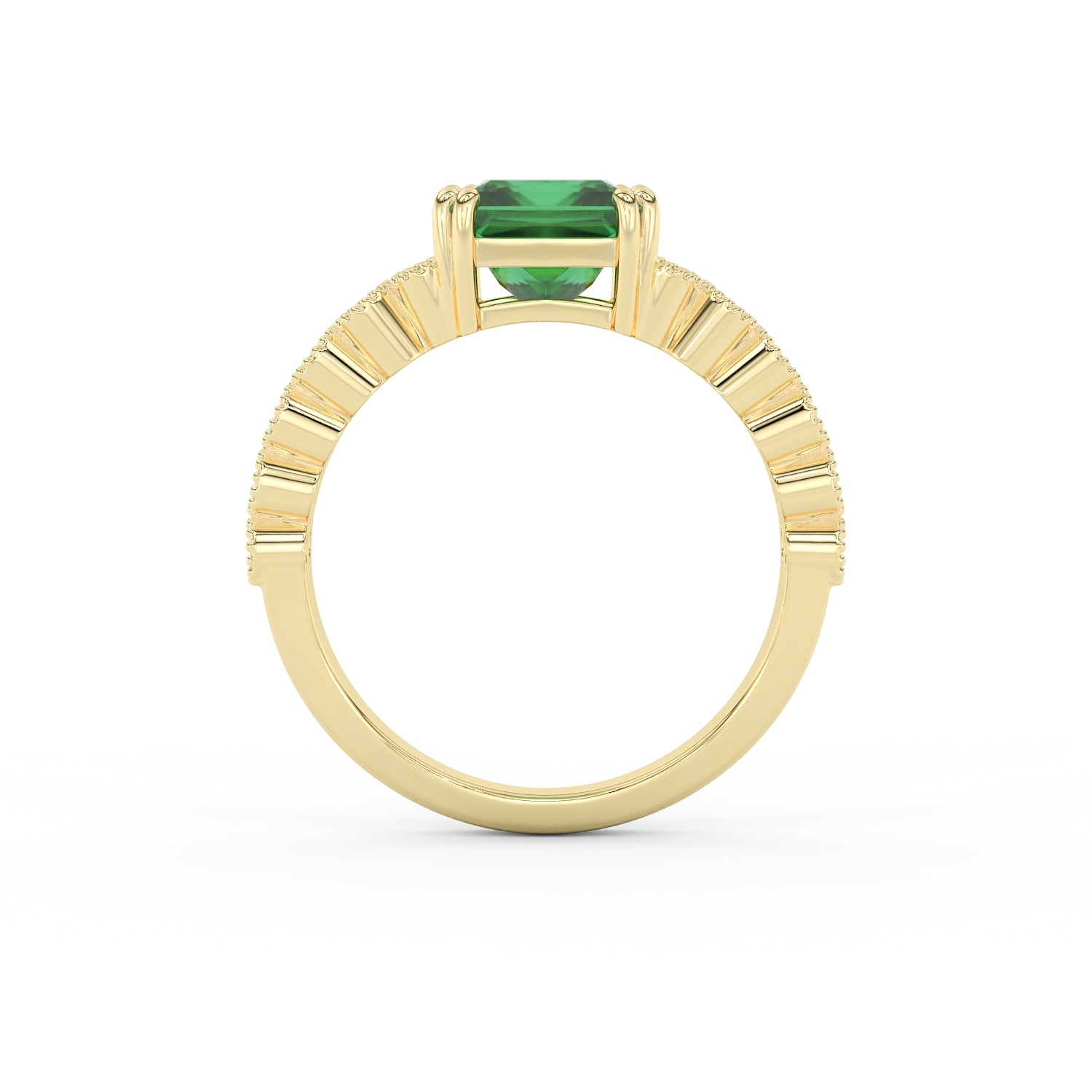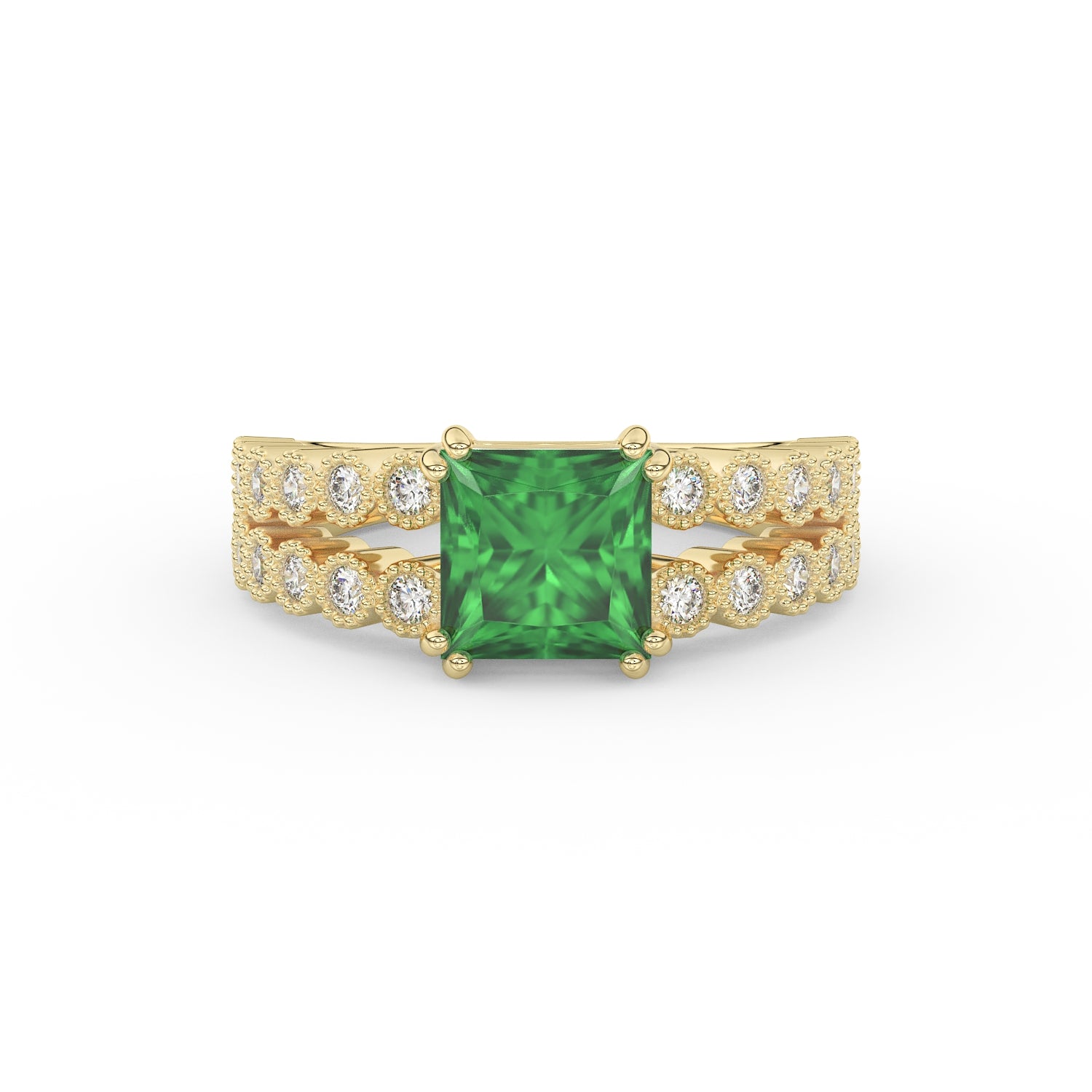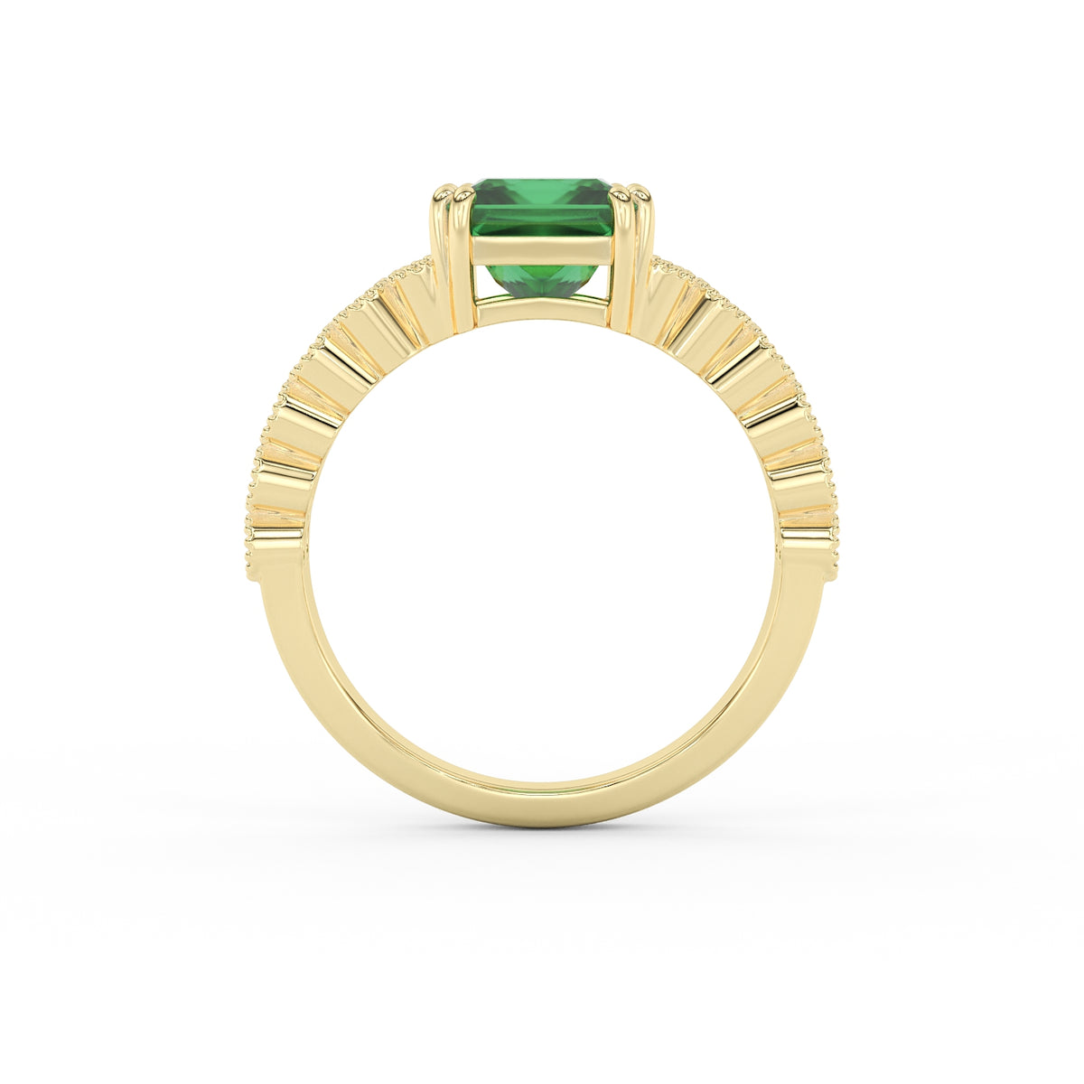 Prix unitaire / parDécouvrez l’élégance intemporelle de cette somptueuse bague en Or 18K, d’un poids total de 6 g. Au centre, une émeraude taille princesse de 1,72 carat est sertie sur 8 griffes (2 par côté), assurant une stabilité parfaite et une mise en lumière optimale.