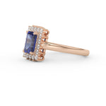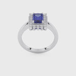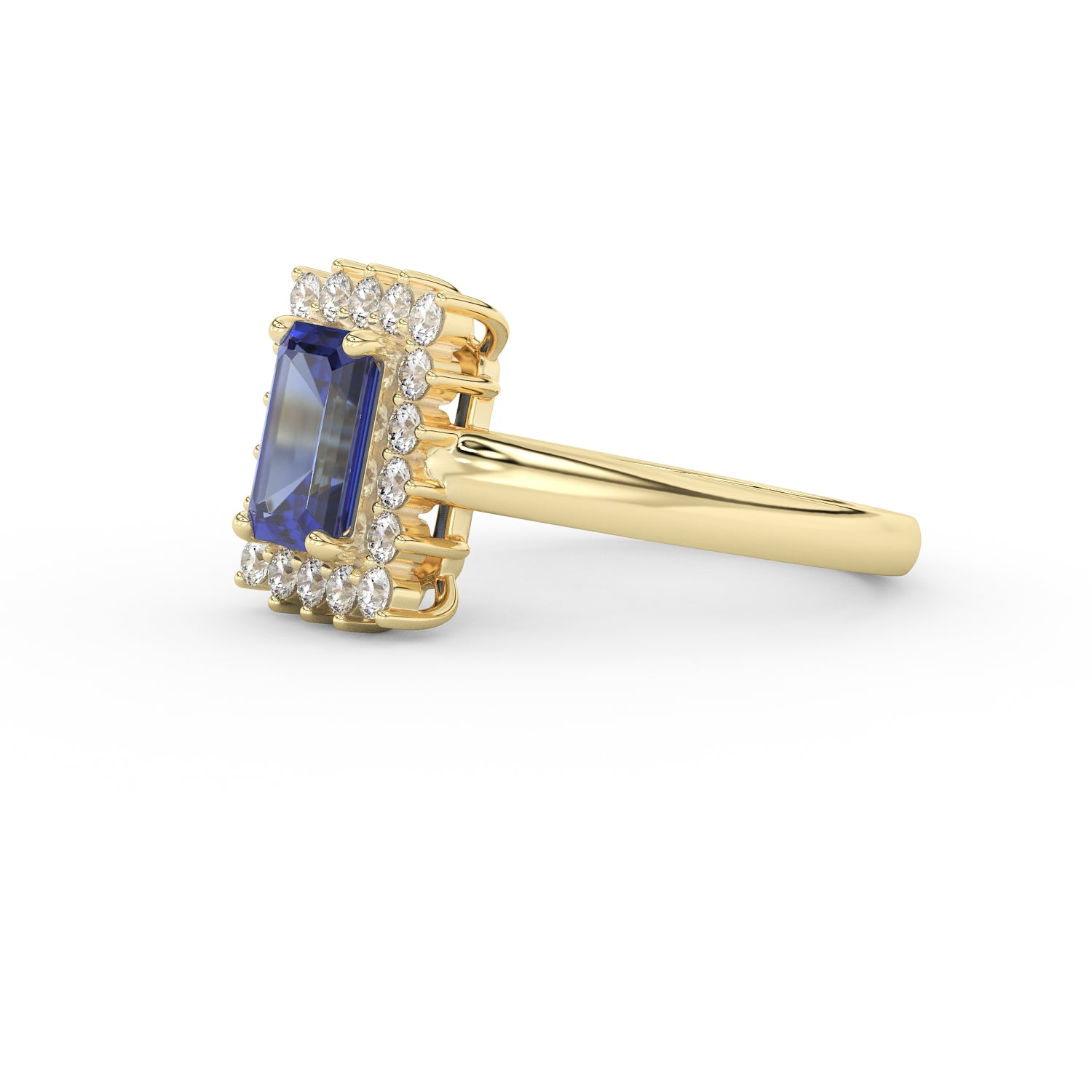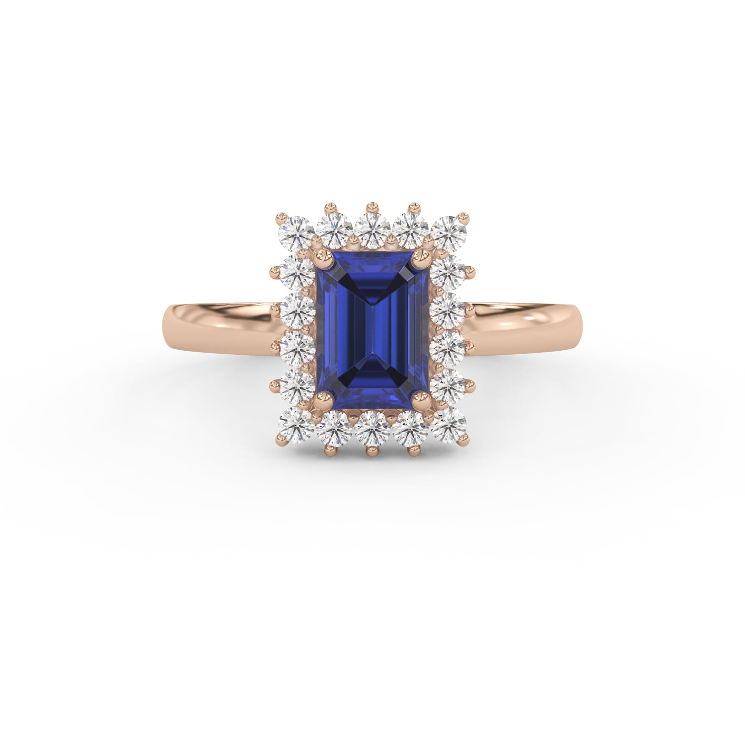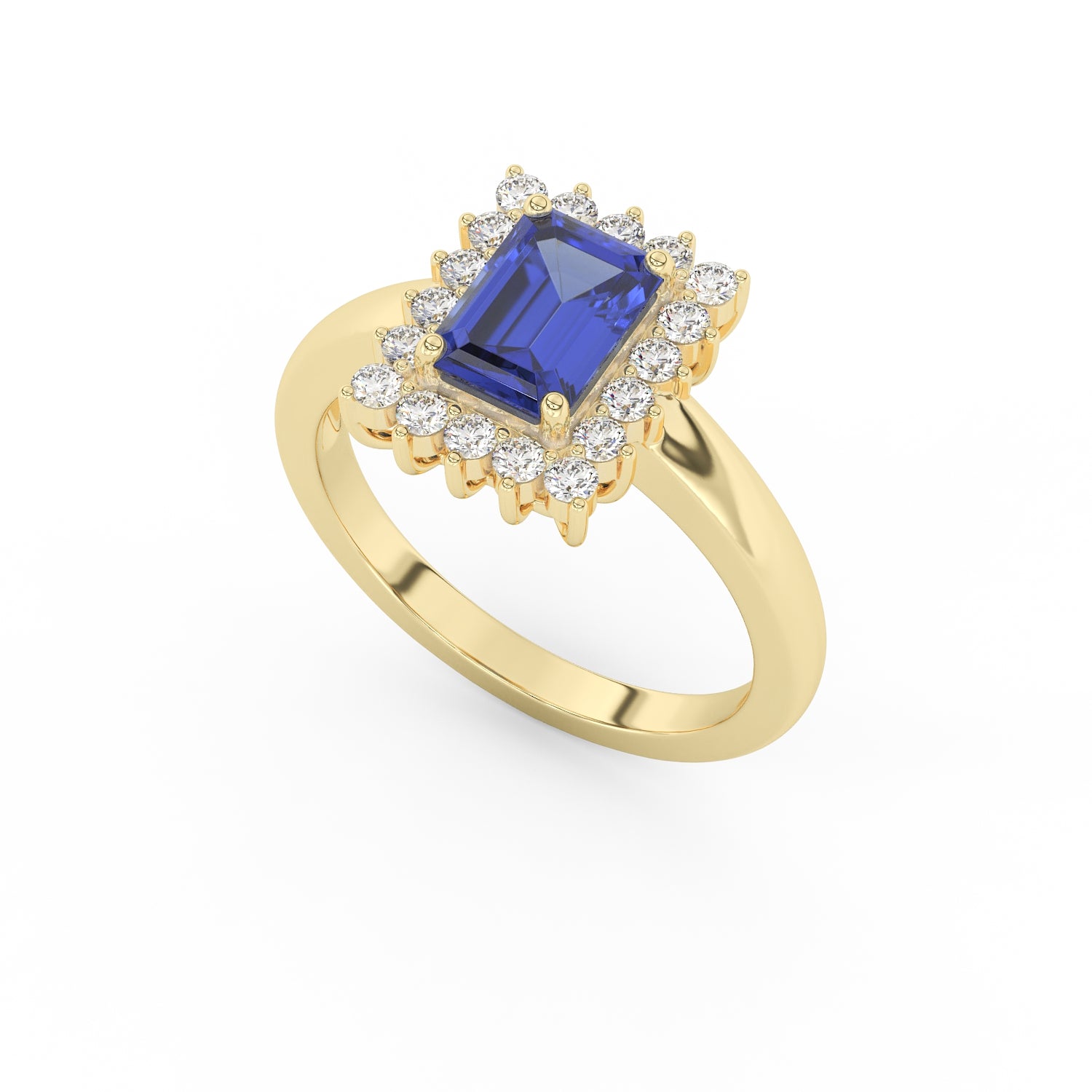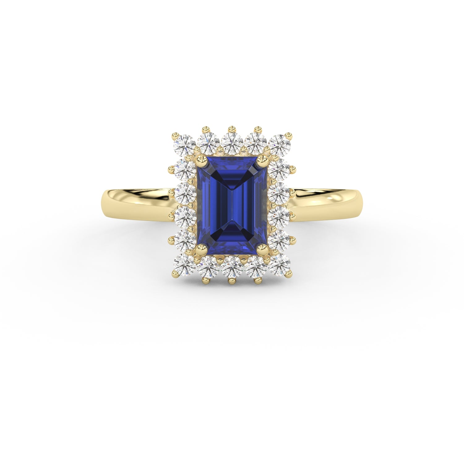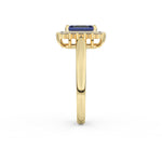 Prix unitaire / parCette Bague Reine Azur met en valeur un saphir taille Émeraude de 1,02 carat, intensément bleu, entouré d’un halo de 18 diamants ronds totalisant 0,28 carat.