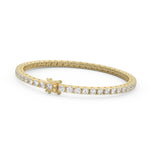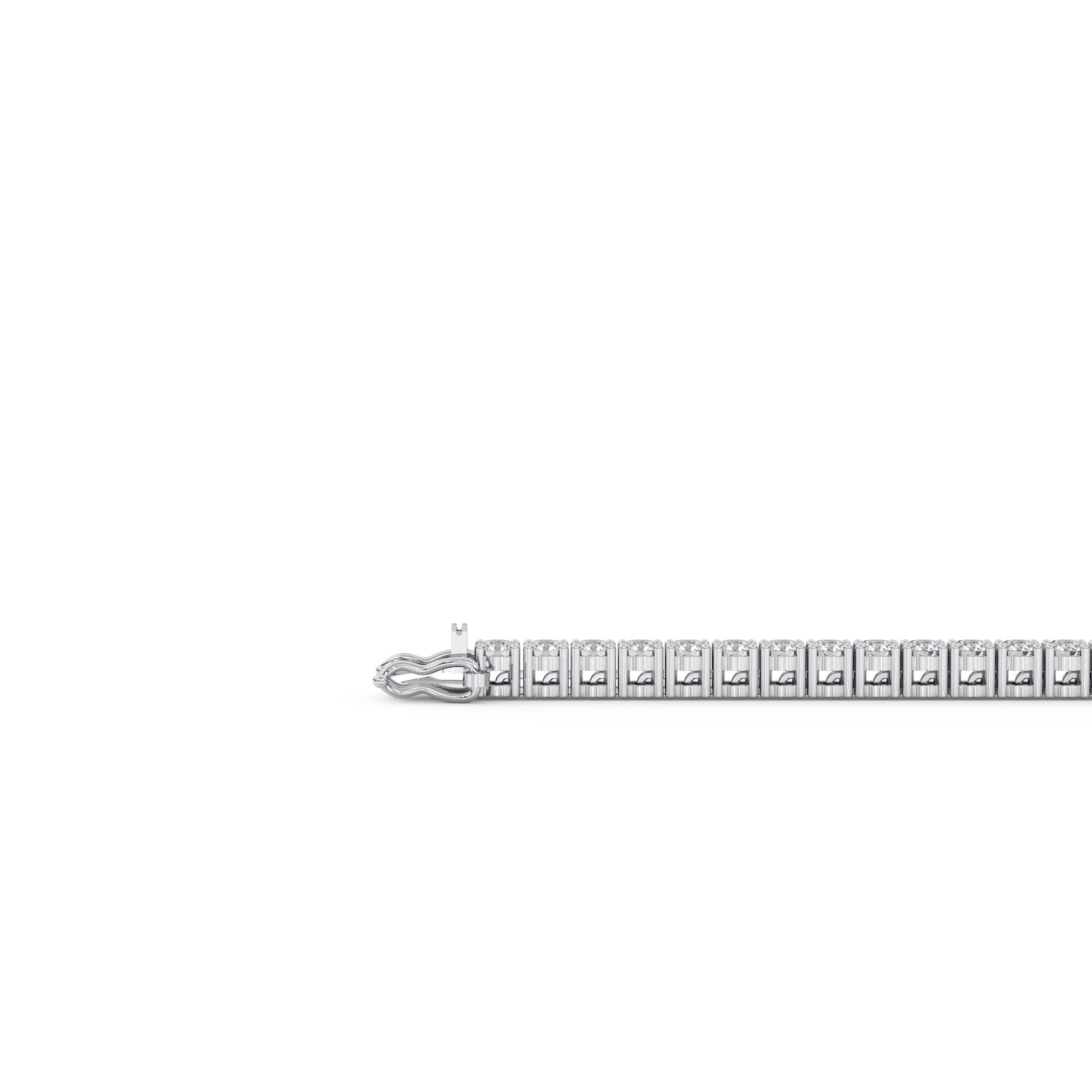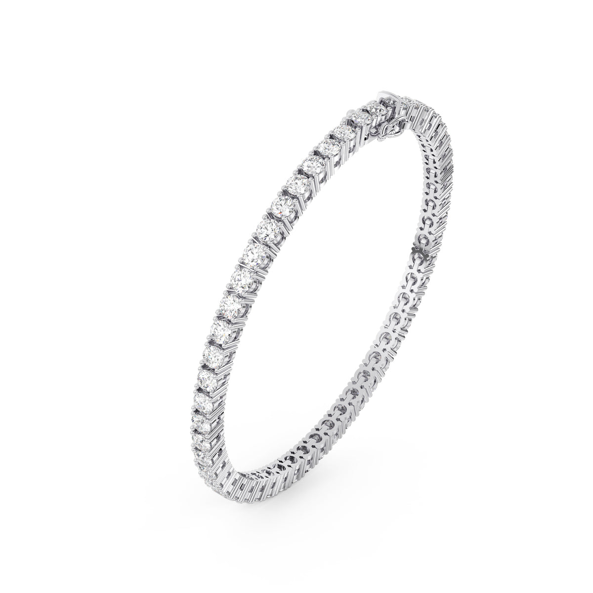 Chaque diamant est minutieusement apparié puis serti de manière à laisser la lumière circuler librement, créant un scintillement fluide et constant autour du poignet. La finesse du serti et la régularité des pierres confèrent à la pièce une présence raffinée, à la fois lumineuse et discrète.
