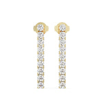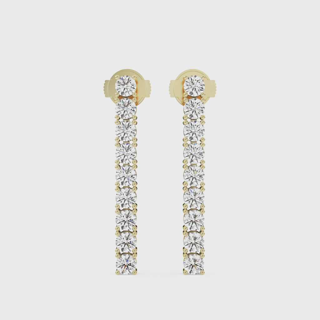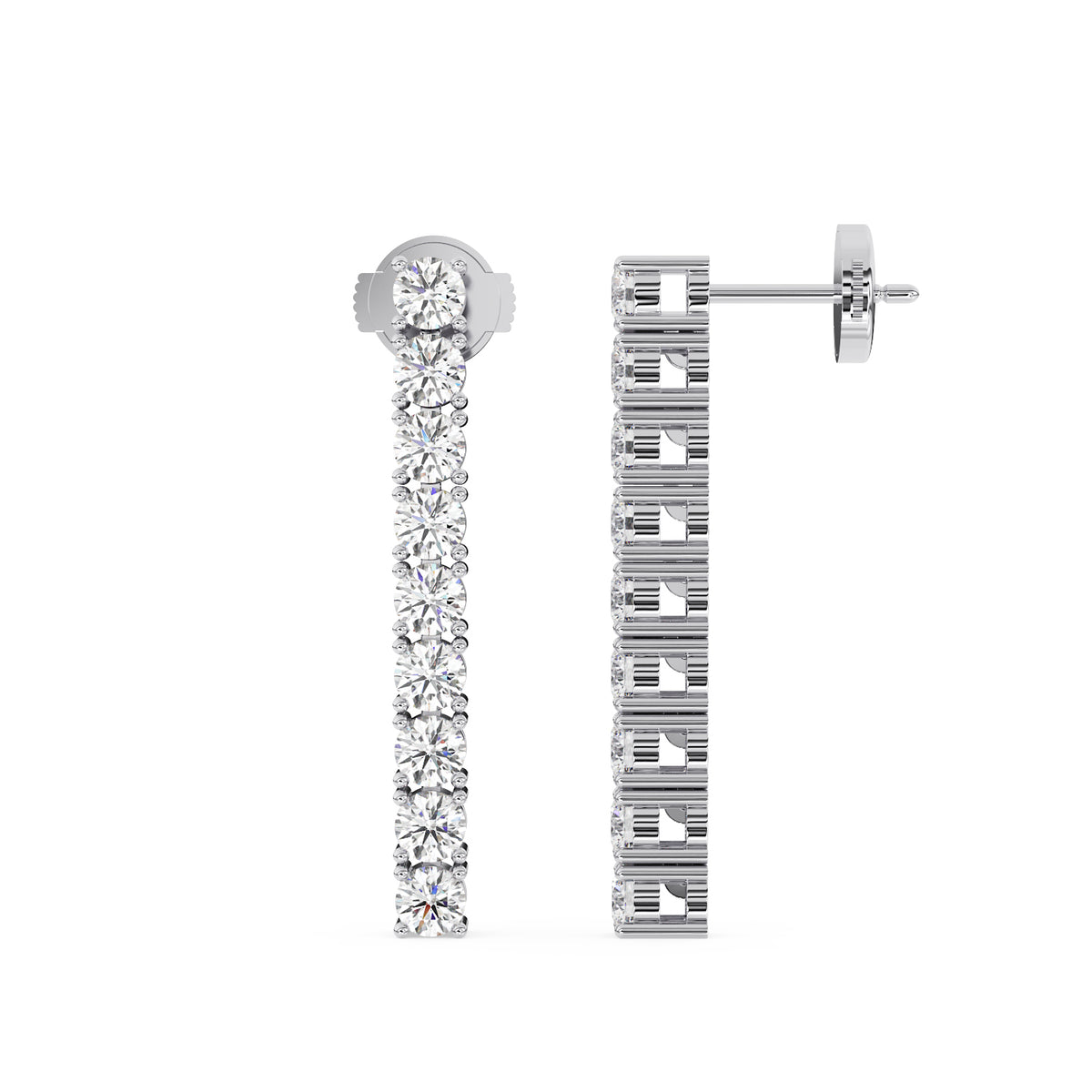 Les pierres se déploient dans une chute de lumière progressive, créant l’effet d’une cascade de diamants qui accompagne le mouvement du visage avec grâce et subtilité. Le serti fin met en valeur chaque diamant, permettant à la lumière de circuler librement pour révéler une brillance nette, fluide et continue.
