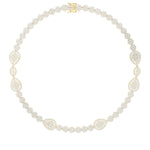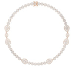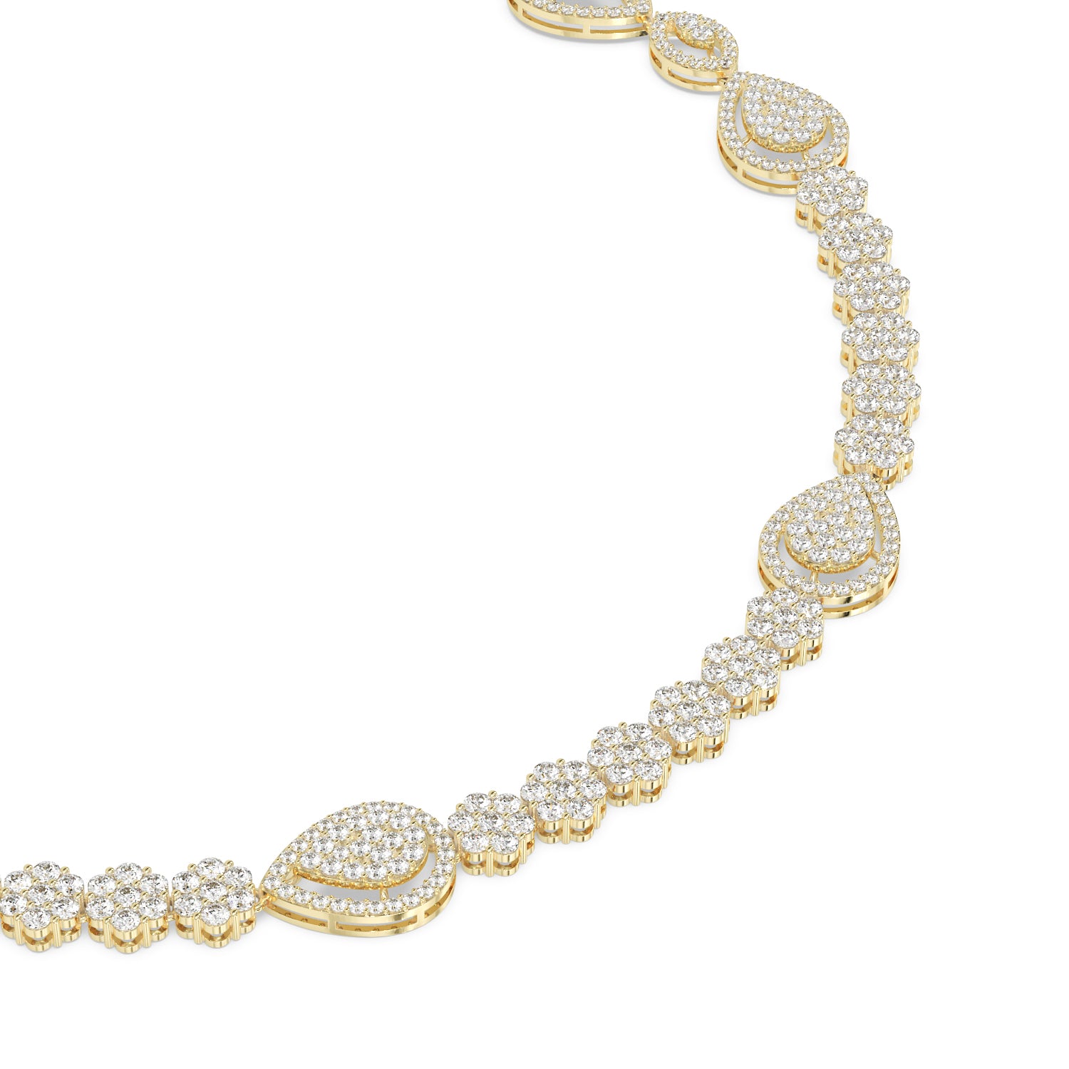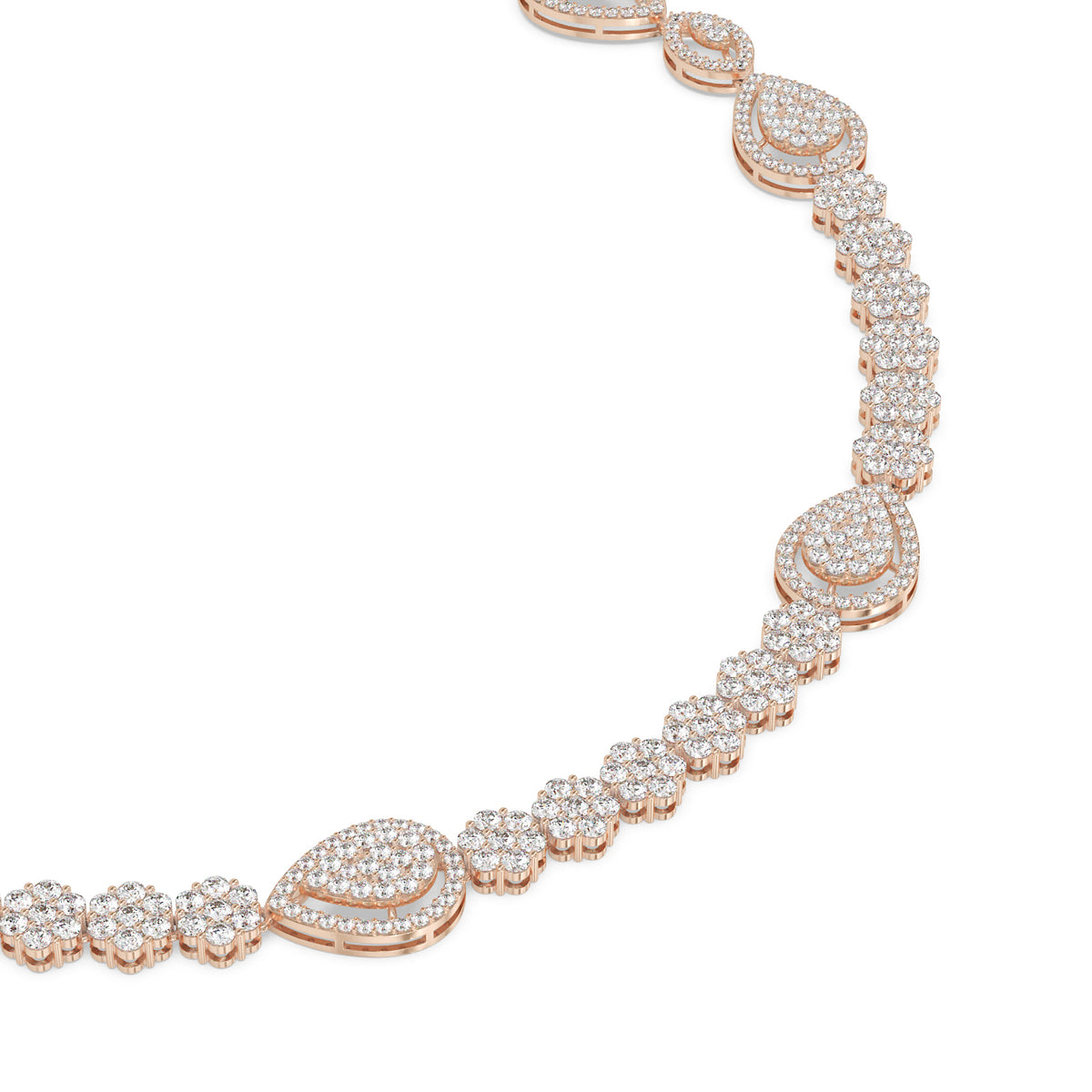 Chaque diamant est minutieusement pavé, créant une texture florale lumineuse fluide, qui épouse naturellement les lignes du décolleté.