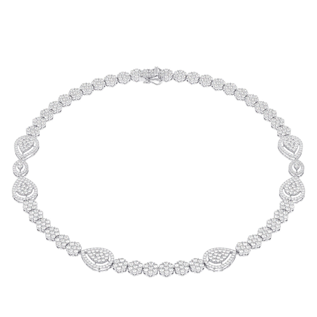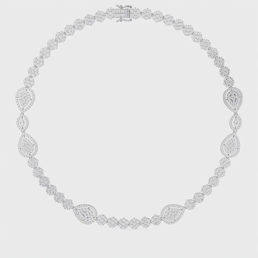 Prix unitaire / parLe Collier Collection Cascade de Fleurs est une pièce de Haute Joaillerie à l’éclat enveloppant. Sertie de 585 diamants ronds totalisant 21 carats, cette création déploie une brillance continue sur tout le cou, offrant un scintillement intense, précis et harmonieux.